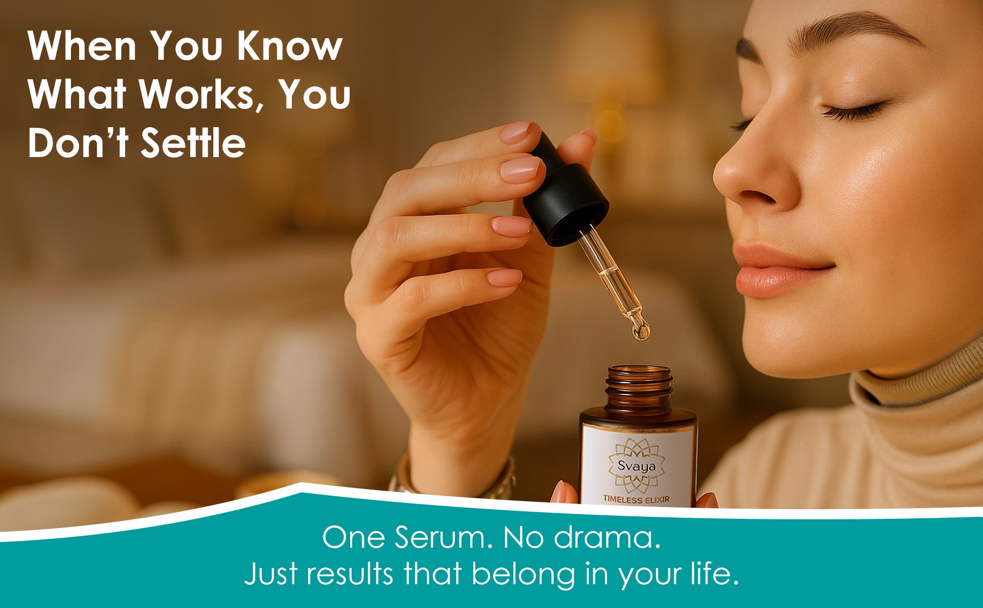 Svaya’s Timeless Elixir isn’t another serum. It’s a one-step ritual that simplifies skincare and delivers results that last.